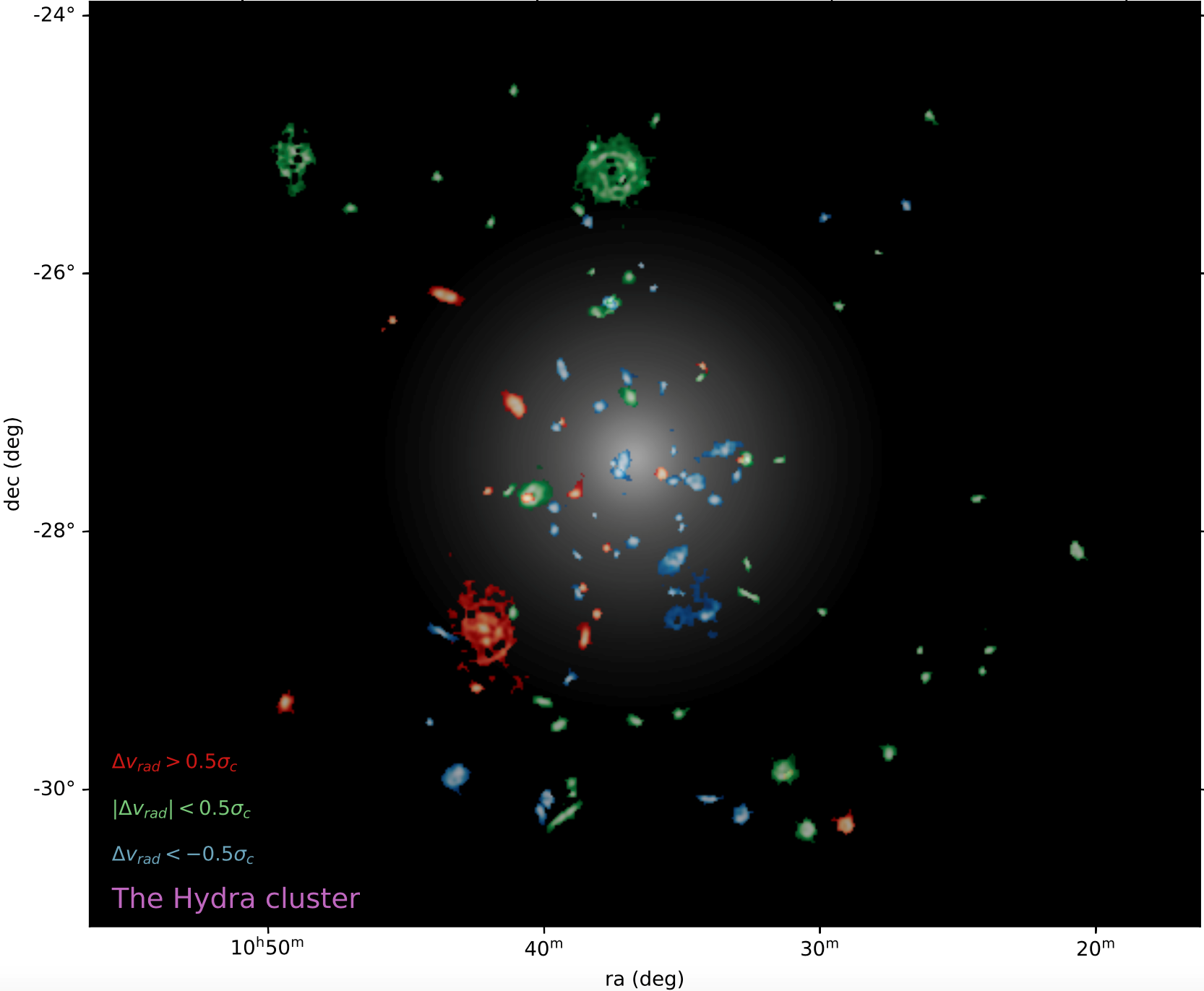 Thu, 2021-07-08 Clusters of galaxies formed from the largest cosmological structures; they are the destination of galaxies traveling along the cosmic web, and serve as the best testbed for environmental effects that accelerate galaxy evolution. The Hydra cluster is the larges