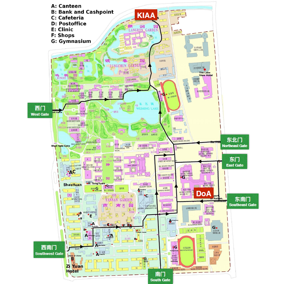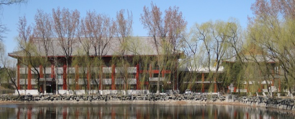The building is located inside the scenic and tranquil Langrunyuan, a part of the Old Summer Palace which was the summer resort of the Empress Dowager Cixi. It houses several dozens of office rooms and is equipped with a modern conference hall of a hundred seats. The elegent structure is of the late empirial Qing Dynasty style, characterized by a big roof and columns in Chinese red. The interior structure and floor layout are designed to encourage and maximize interactions amongst the faculty and visitors.