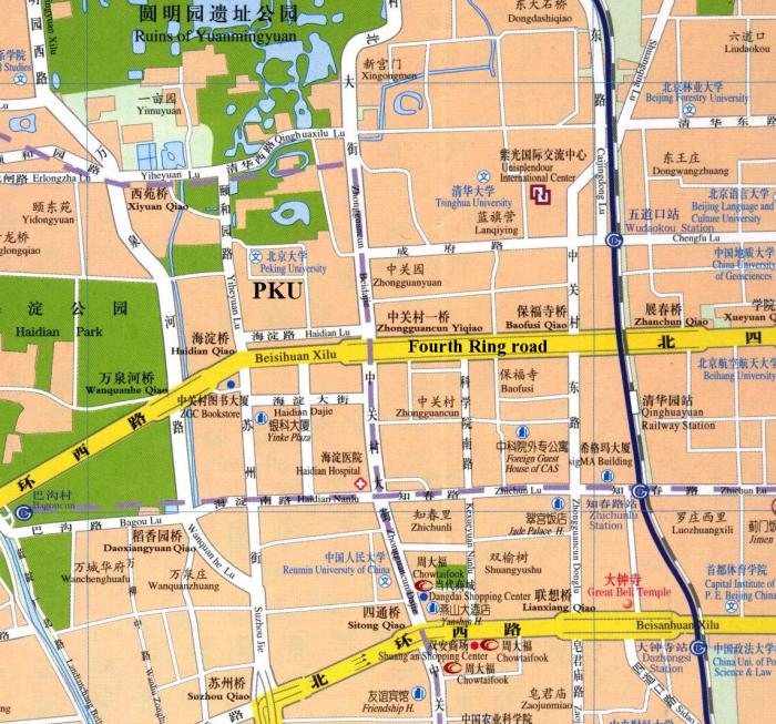 Location of the CampusPKU is located in Zhong Guan Cun, Hai Dian Qu, in northwestern part of Beijing, outside the northwest corner of the fourth ring road and south of the Old Summer Palace (Yuan Ming Yuan). A map showing PKU and the surrounding area is given below. |