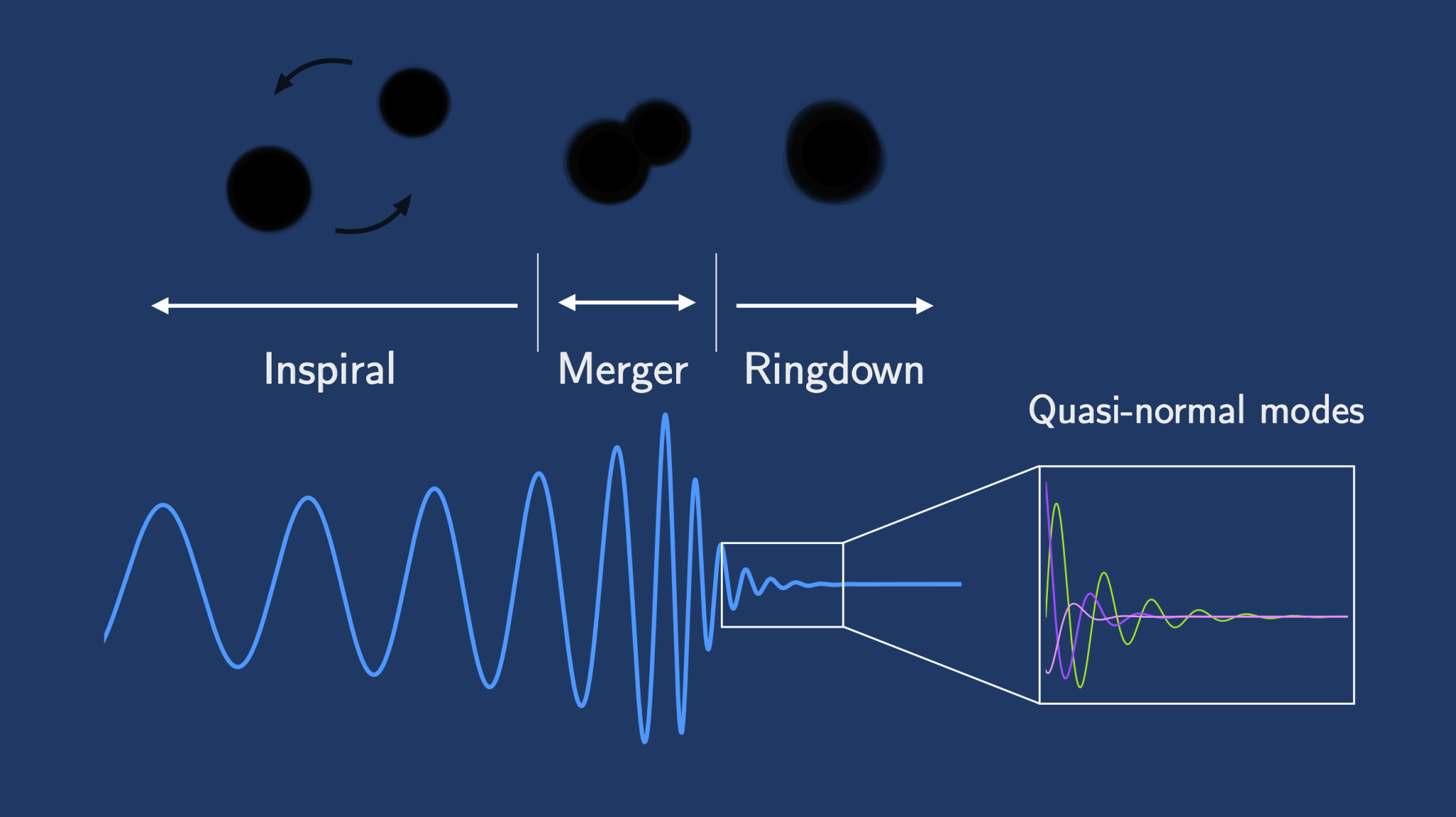 Figure 1: Schematic of the ringdown signal from a binary black hole merger, where the signal is often modeled as a superposition of multiple quasi-normal modes (Y. Dong & Z. Wang)