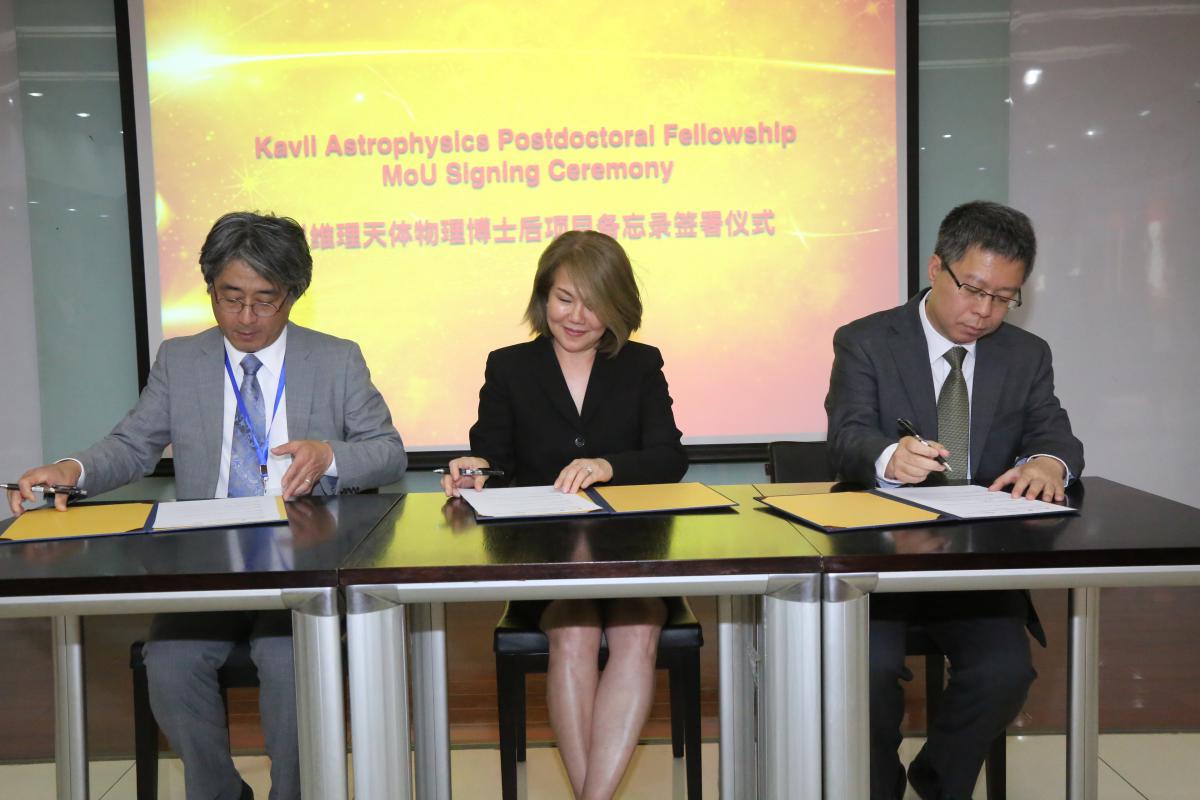 A Kavli Astrophysics Postdoctoral Fellowship memorandum of understanding (MoU) was signed by Luis C. Ho, Director of KIAA, Hitoshi Murayama, Director of KIPMU, and Miyoung Chun, Executive Vice President of Science Programs of Kavli Foundation. The KIAA-KIPMU joint postdoctoral fellowship program will be launched starting 2018, with the goals to promote collaboration and joint development of astronomy in between the two institutes.