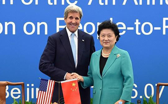 Chinese Vice Premier Liu Yandong and US Secretary of State John Kerry attended the Seventh Conference of China-US High-Level Consultation on the People-to-People Exchange (CPE).