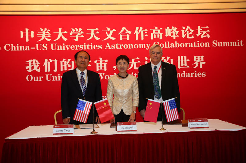 During the Summit, a new astronomy collaboration program MoU between China and US were signed by Liu Jinghui, Secretary-General of China Scholarship Council, Henry Yang, Chancellor of UC Santa Barbaba and Robert Bley-Vroman, Chancellor of University of Hawaii at Manoa, representing universities from China and the US.