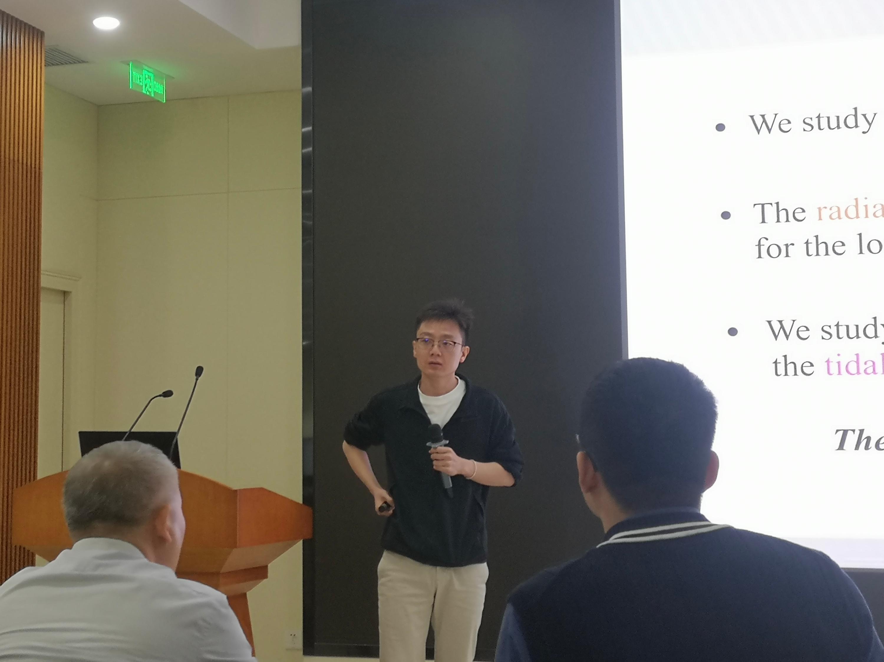 In the afternoon, there was a comprehensive selection of talks on binary black holes orbiting supermassive black holes, coming solely from Prof. Xian Chen’s group. These speakers, all of whom were PhD students, were Mr. Peng Peng, Ms. Xiaoyue Zhang, Mr. Zhongfu Zhang and Mr. Xinmiao Zhao. It was refreshing to see the cohesion and synergy between these researchers in tackling a common goal.