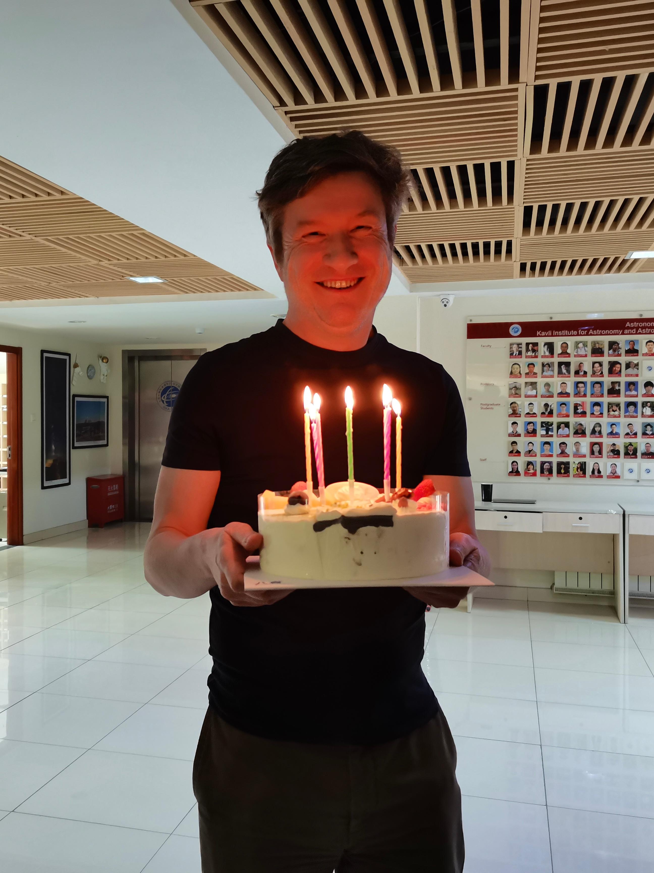 After a morning of intriguing and stimulating talks, we took a break for lunch. To Prof. Ian Jones’ surprise, he was greeted with a birthday cake to celebrate his 50th birthday. He had in fact spent most of his 50th birthday travelling from the UK to Beijing, so this was the least KIAA could do to celebrate with him.